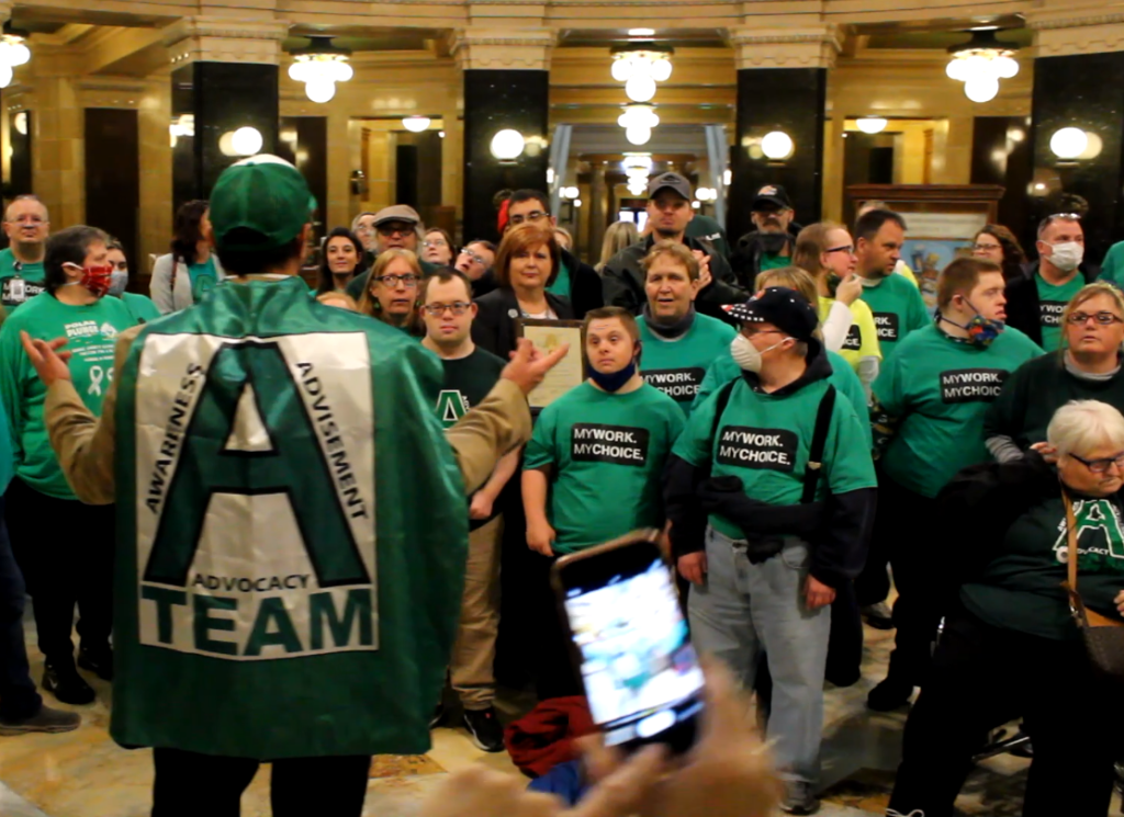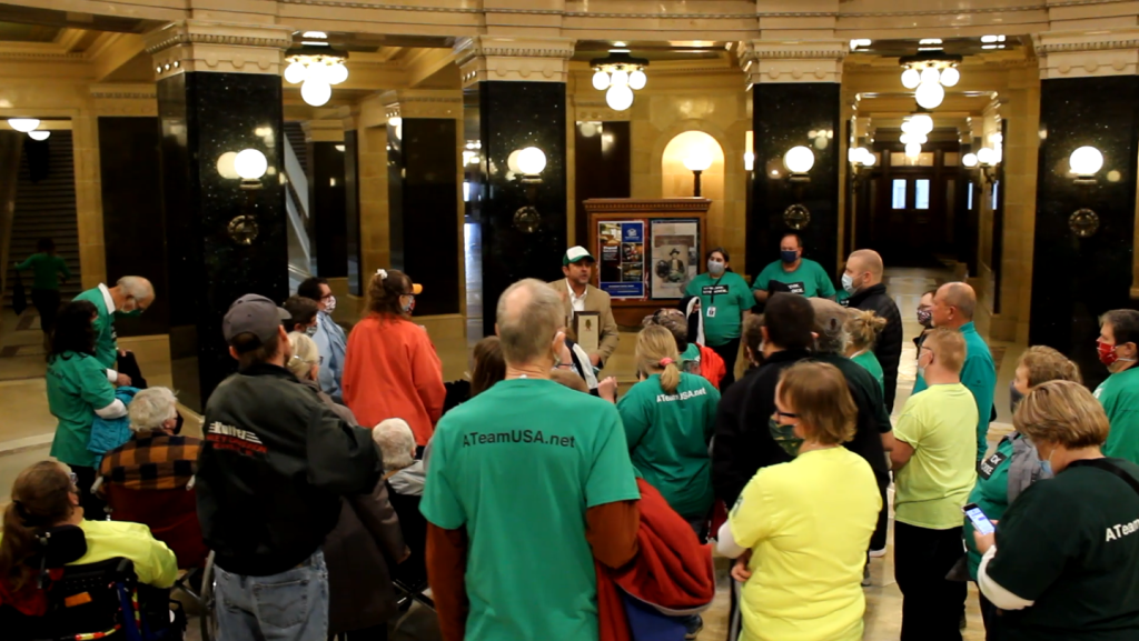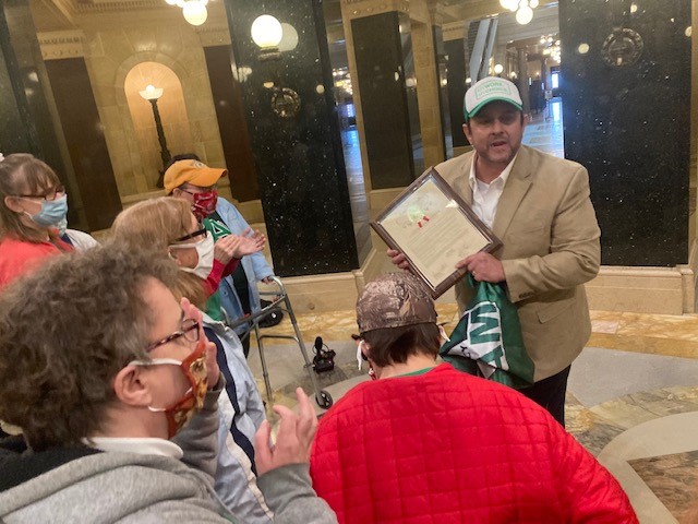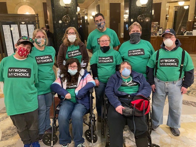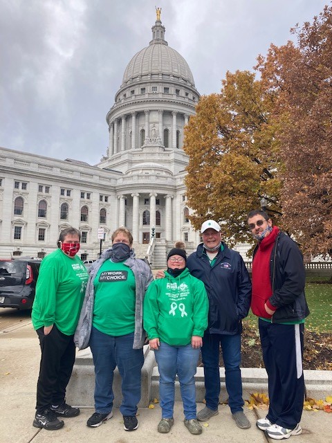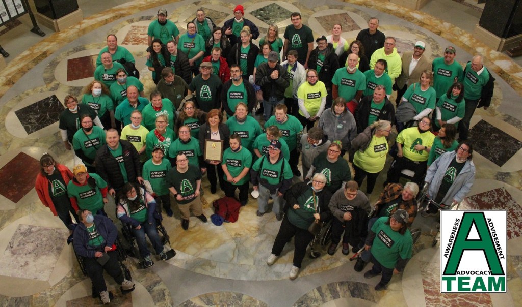 A-Team self and family advocates travelled from across Wisconsin to the State Capitol in Madison in celebration of a massive victory! Legislators voted unanimously to pass a joint resolution that will protect a full array of work choices for individuals with diverse abilities. A-Team Wisconsin is proud to have been present to thank these legislators and have their choices be recognized. We even had special national guest Samantha Baker from Congressman Grothman’s office join us!