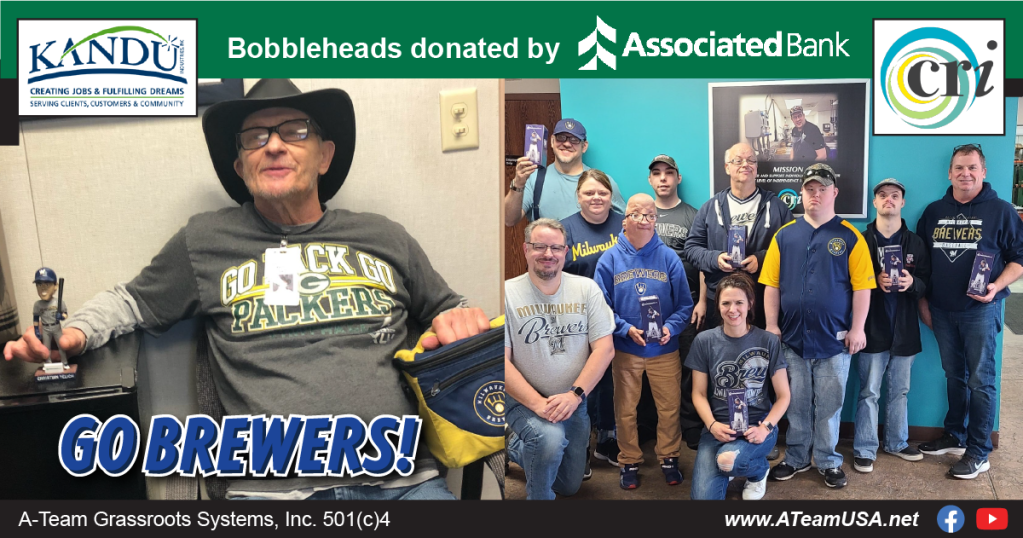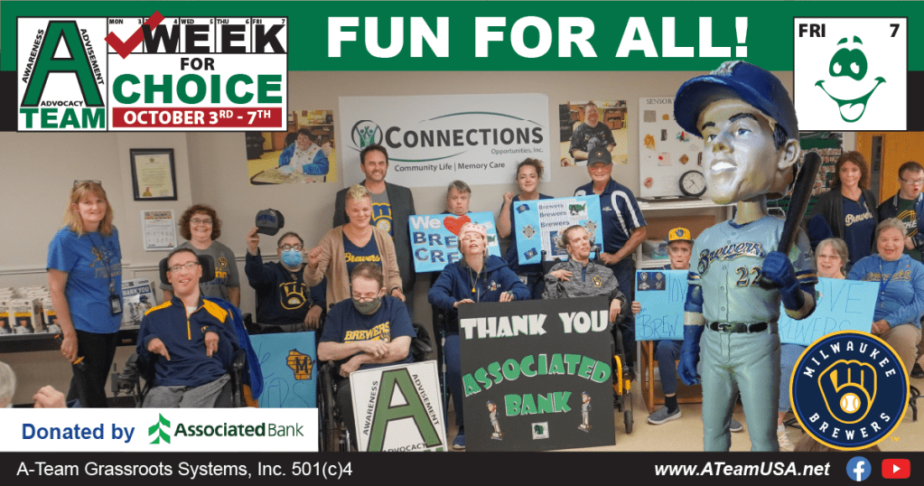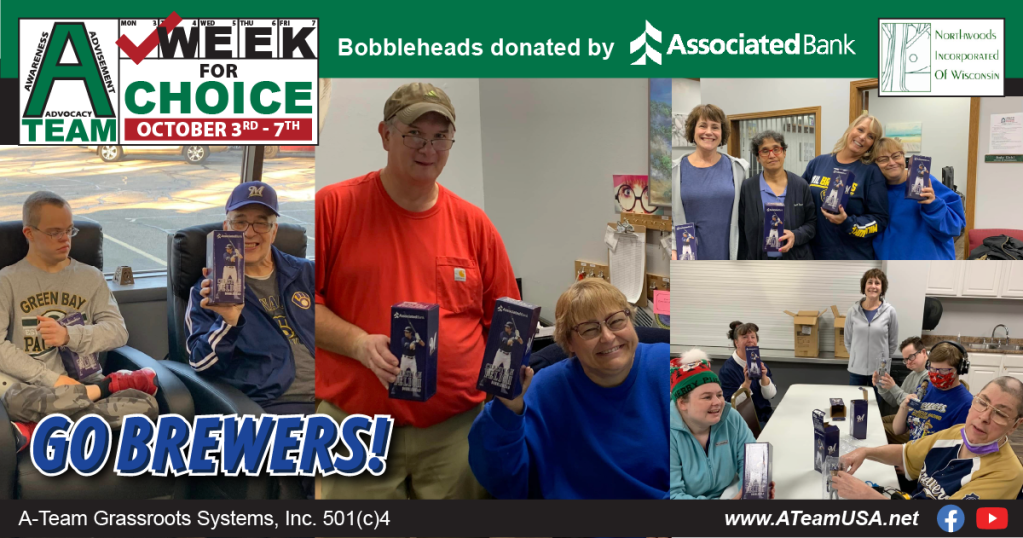 Friday Fun-day! On behalf of A-Team Wisconsin and Opportunities, Incorporated, we want to thank Associated Bank for their generosity in supporting our Week for Choice! Friday was a special event, celebrated across the state and by those we serve, all of whom were gifted bobbleheads of Brewers MVP Christian Yelich! What did you do for our Fun For All Friday?